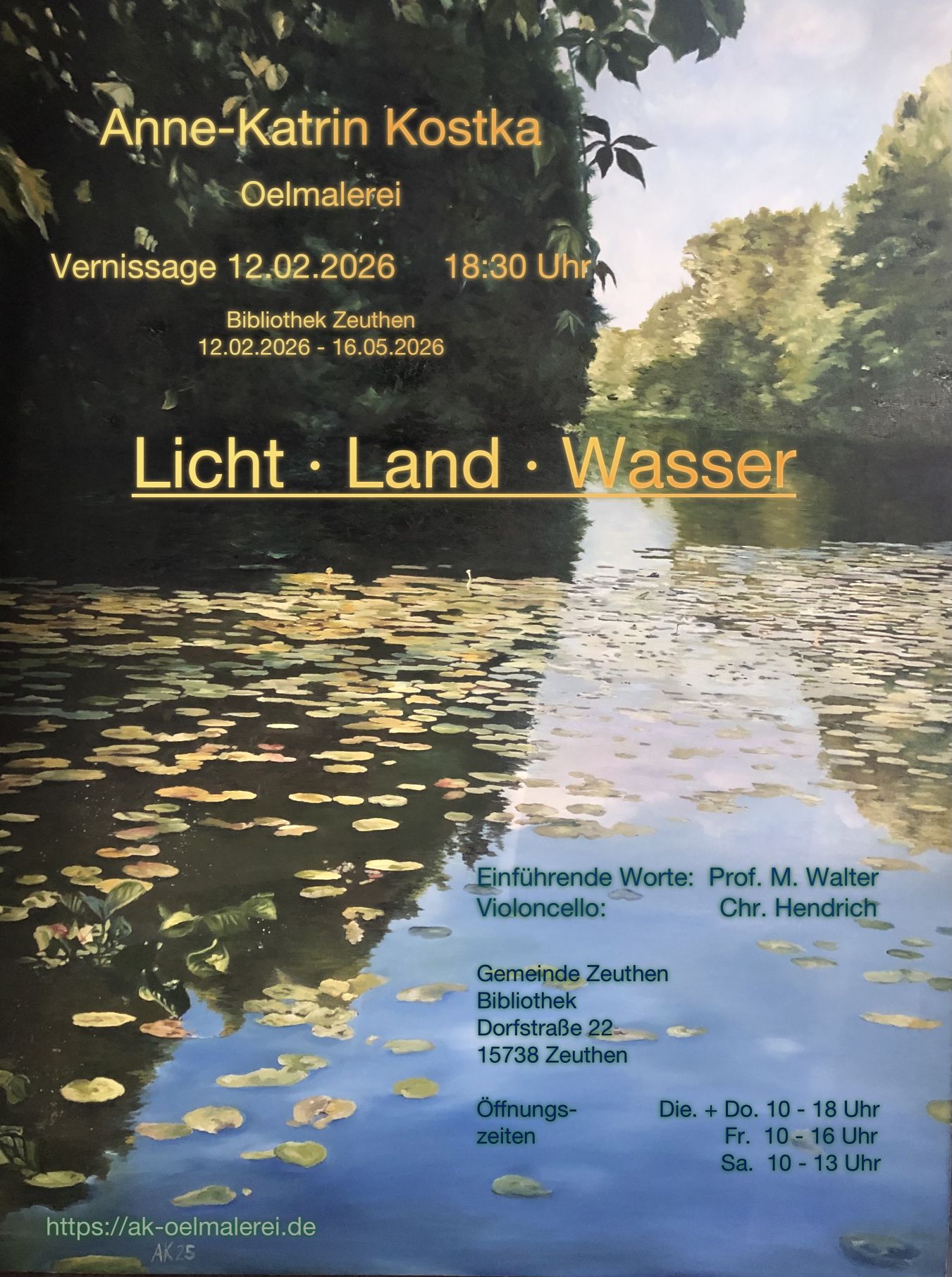 Herzliche Einladung zur Vernissage der neuen Ausstellung im OG der Bibliothek Zeuthen von Anne-Katrin Kostka am 12.02.2026 um 18.30 Uhr.
