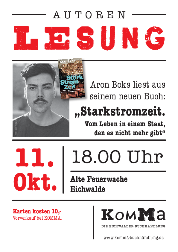 Aron Boks liest aus seinem neuen Roman Starkstromzeit. Vom Leben in einem Staat, den es nicht mehr gibt.