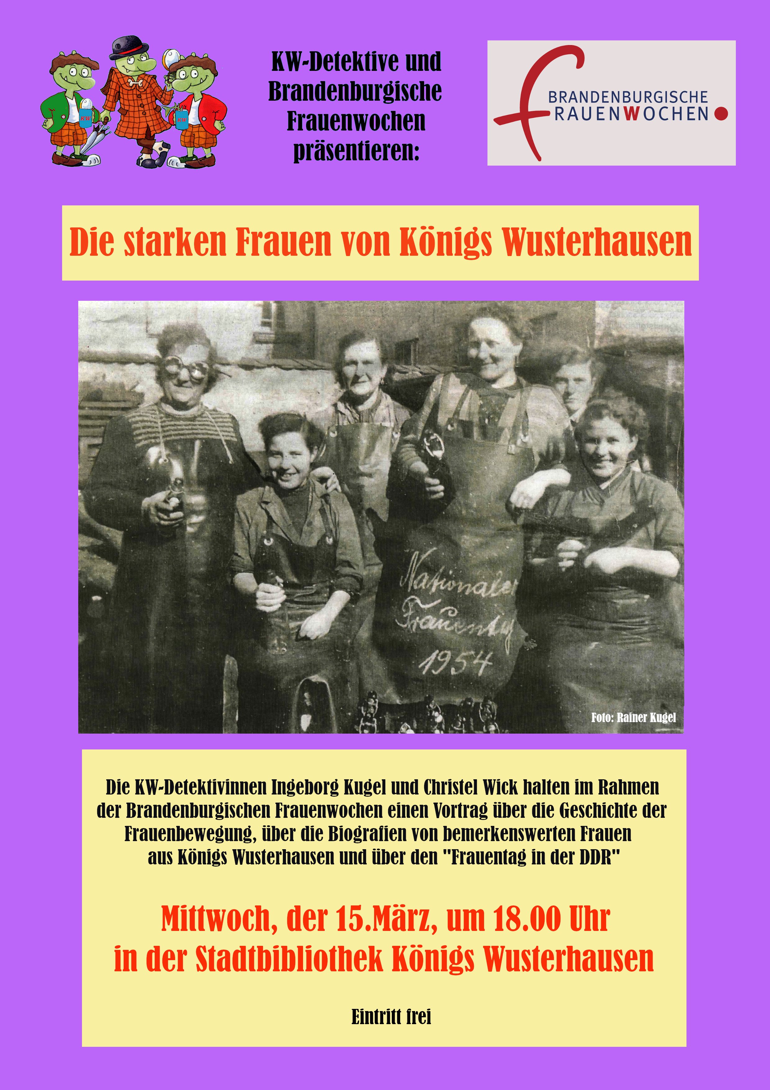 Im Rahmen der Brandenburgischen Frauenwochen veranstalten die KW-Detektive eine Sonderveranstaltung: „Die starken Frauen aus Königs Wusterhausen“.