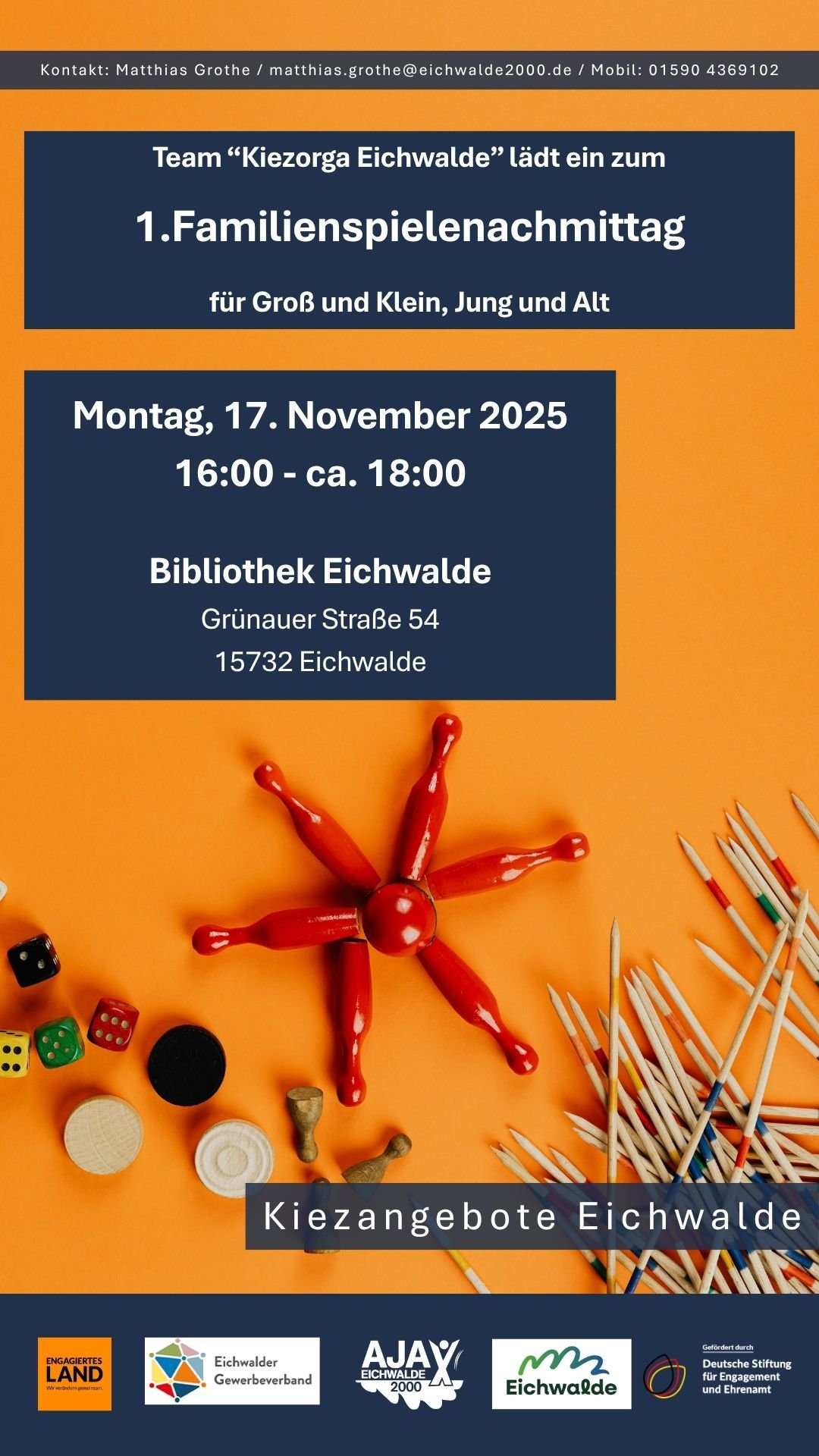 Am Montag, den 17. November startet ein neues Format des Teams "Kiezorga Eichwalde": der Familienspielenachmittag.