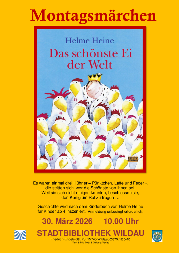 Anmeldung unbedingt erforderlich: Stadtbibliothek Wildau 03375 / 500 420.