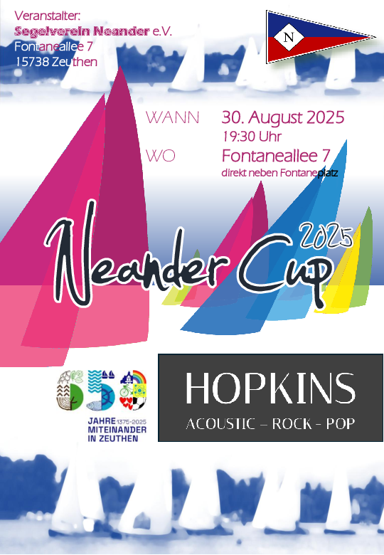 Das letzte Augustwochenende wird in Zeuthen wassersportlich vom Neander Cup bestimmt. Am Samstag, 30. August, und dem darauffolgenden Sonntag, starten wieder 15er Jollenkreuzer, Ilca 7 und Ilca 6, sowie 420er Jollen – letztere, und das ist ein Novum, nur am Samstag. Die jugendlichen 420er-Segler haben dadurch die Chance, am Wochenende neben der Wettfahrt noch andere Interessen zu verfolgen. Der Verein möchte die Attraktivität des Neander Cups für die Jugendlichen dadurch erhöhen. Für die traditionsreiche 15er Jollenkreuzer-Klasse ist der Neander Cup eine sogenannte Ranglistenregatta, die in die bundesweite Wertung der 15er Jollenkreuzer einfließt. 15er Jollenkreuzer und Laser starten an beiden Regattatagen.