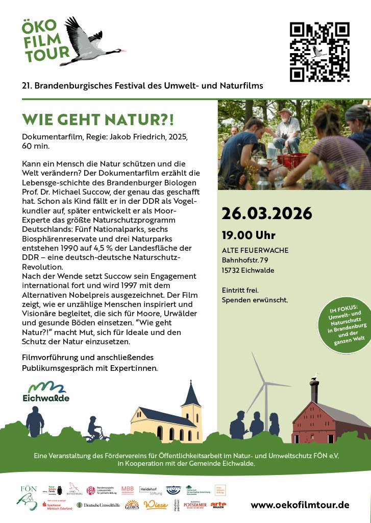 Die Ökofilmtour geht in Eichwalde in die zweite Runde! Insgesamt finden drei Veranstaltungen am 05., 14. und am 29. März 2026 statt.