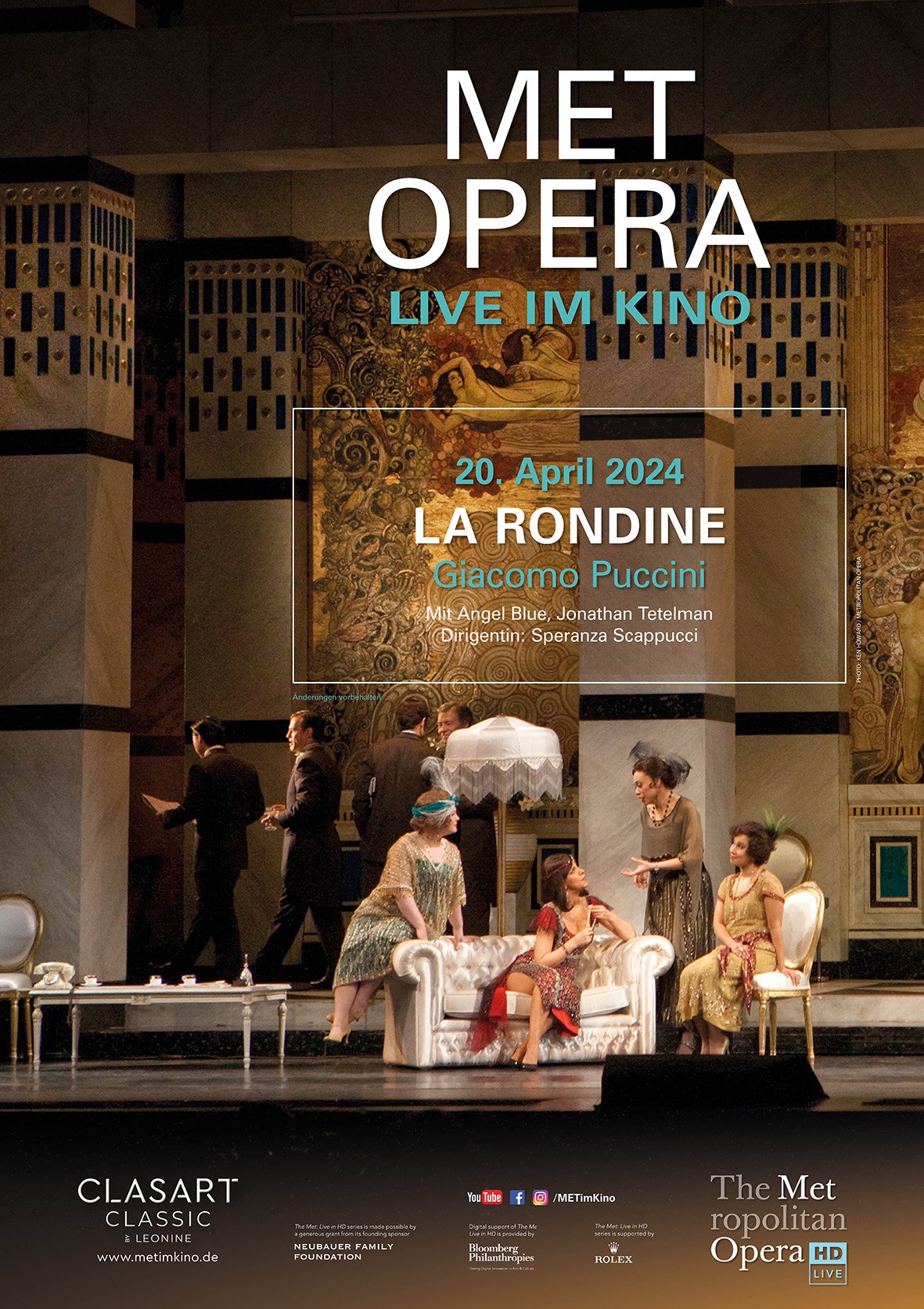 La Rondine, Puccinis einzige komische Oper, findet selten ihren Weg auf die Bühne. Dabei ist sie ein faszinierendes Werk mit einer Fülle von überschwänglichen Walzern und lieblichen Melodien. Die bittersüße Liebesgeschichte zwischen der glamourösen Kurtisane Magda und dem idealistischen jungen Ruggero, für den sie ihren reichen Verehrer verlässt, entführt uns in Nicolas Joëls Art-Deco-Inszenierung aus dem Herzen des Pariser Nachtlebens in eine traumhafte Vision der Côte d'Azur. Der chilenische Tenor Jonathan Tetelman gibt sein heiß ersehntes Met-Debut.