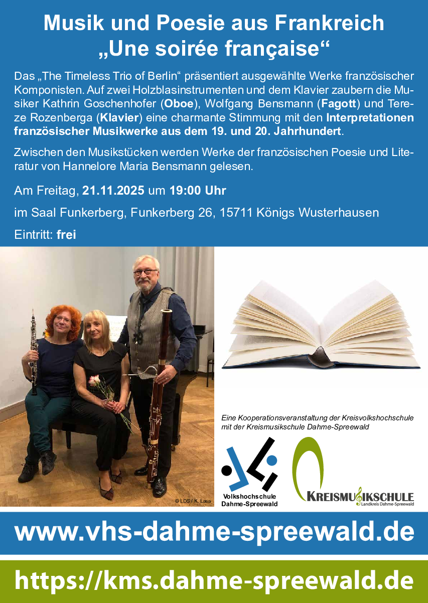 Zwischen den Musikstücken werden Werke der französischen Poesie und Literatur von Hannelore Maria Bensmann gelesen.