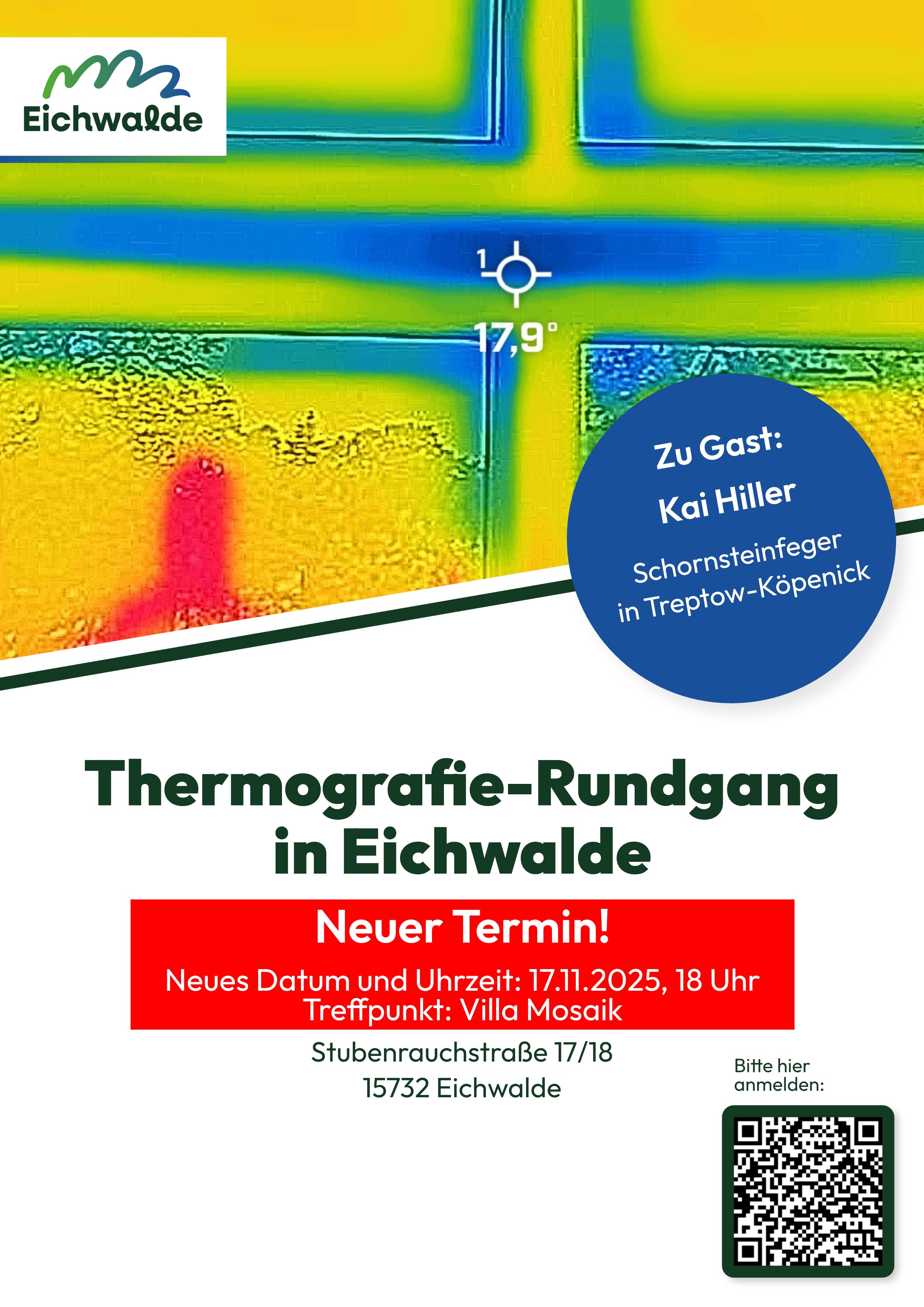 In Verbindung mit dem Angebot der Gemeinde Eichwalde, eine Wärmebildkamera kostenfrei zur Eigenanwendung auszuleihen, laden wir Sie herzlich zu einem Thermografie-Rundgang am 17. November 2025 ein.