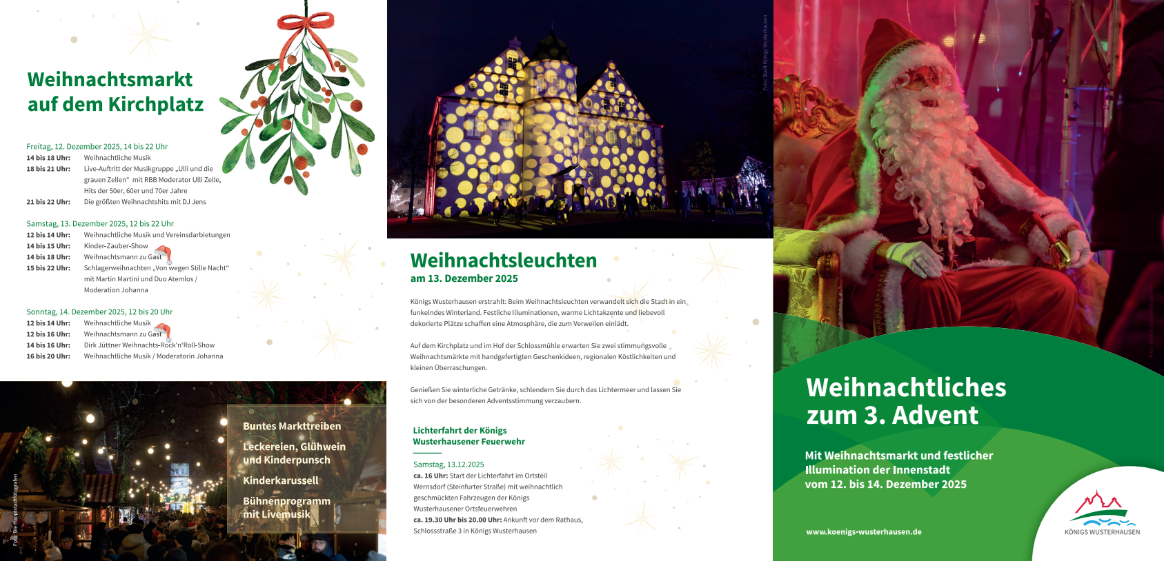 Die Stadt erstrahlt am 13. Dezember, an diesem Abend in ein funkelnden Lichtermeer – warme Lichtakzente und geschmückte Plätze verwandeln Königs Wusterhausen in ein stimmungsvolles Winterland.